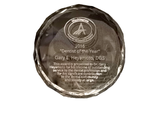In October 2016, Dr. Gary was named WA AGD's Dentist of the Year at the annual Oral Cancer/Membership Gala. He was surprised (shocked) to be honored in front of family and friends. "I'm greatly appreciative for this recognition which should be shared amongst all the volunteers and givers in this organization. This was a total surprise."