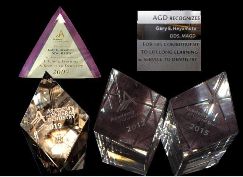 Dr. Heyamoto has been awarded his second Lifelong Learning & Service Recognition Award. Past late AGD President Howard Gamble, DMD, FAGD says, "For Dr. Heyamoto, this award symbolizes a career of excellence in dentistry and demonstrates the characteristics of a role model to his fellow dentists and to members of the community."