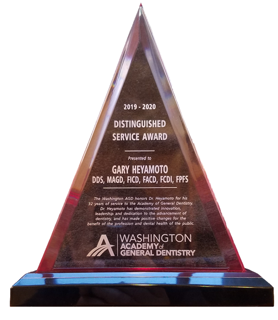 Dr. Heyamoto has been awarded his second Lifelong Learning & Service Recognition Award. Past late AGD President Howard Gamble, DMD, FAGD says, "For Dr. Heyamoto, this award symbolizes a career of excellence in dentistry and demonstrates the characteristics of a role model to his fellow dentists and to members of the community."