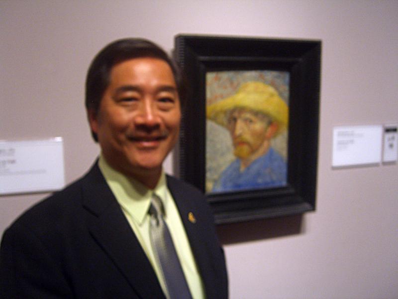 In August 2010, Detroit was the venue for the Board of Trustee meeting of the Academy of General Dentistry. A visit to the Detroit Institute of Art was a highlight for Dr. Heyamoto. Here he is pictured alongside an original Van Gogh self portrait. In 2011, the B.O.T. meeting was held in San Destin, Florida. Boca Raton was the 2012 site.