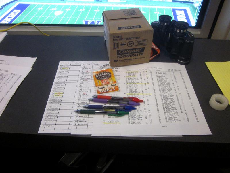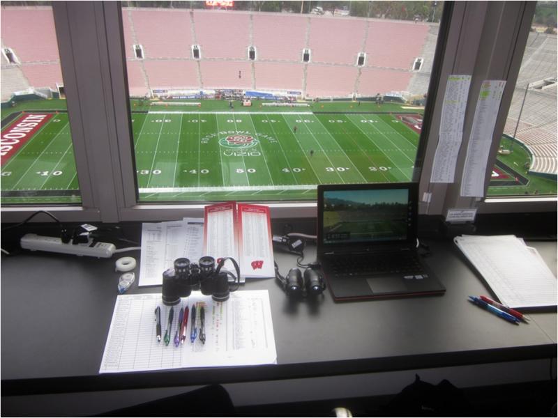 "My view for calling/keeping game defensive stats at the Rose Bowl."