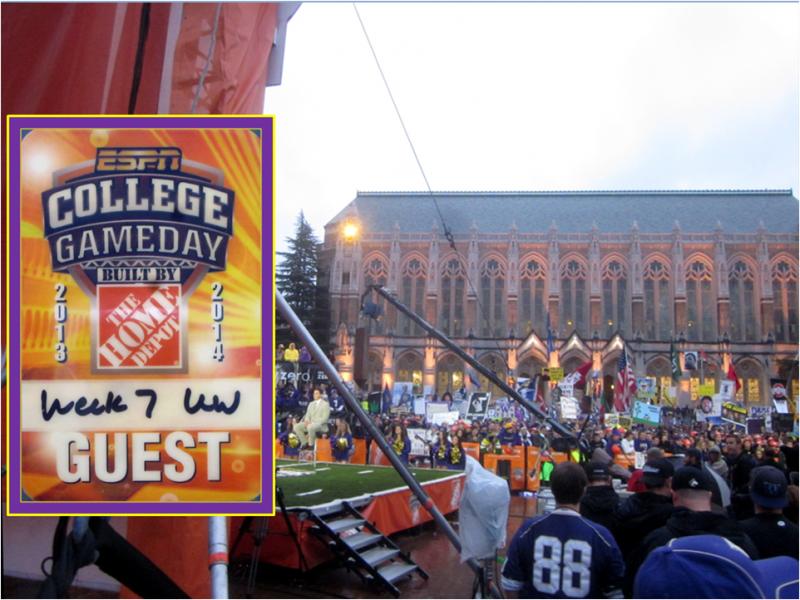 ESPN came to Seattle on October 12, 2013 when their football GAMEDAY program was produced on campus. Dr. Gary was issued a pass to view the behind-the-scene activities.